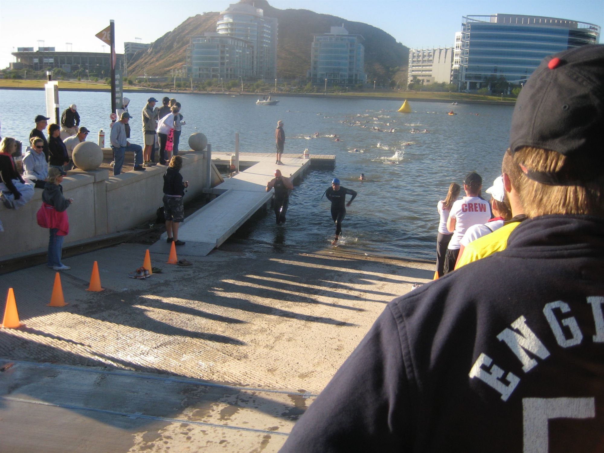 Show up early get my packet. Got my bike rode it around a bit and made sure my gears were in a good starting position set up my transition. stretched and put on my wetsuit.