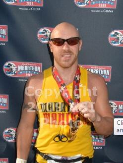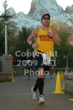 Comments: Well...another Disney Marathon down. It was HUMID!! The start, being up front, wasn't too crowded. We started off amid the usual fireworks and fun. I ran comfortably, but not too slowly. I needed to see how fast I could go. I had previously thought I'd be able to go 3:05 to 3:10 on this day, but I was running SO much in the weeks previous that I just didn't know what I had left in me. I didn't FEEL a 3:10. So I just went to see what I could do. I knew my last Disney was a 3:43 and I could definitely beat that. A 3:15 would be a BQ race, so I figured I'd just shoot for that and if it happened, great. By Mile 1, I was sweating. I had plenty of gels with me, but I could feel that I'd be pushing it. Disney is a hit-or-miss race with temps. Today, it was a miss...hot and humid. I knew it wouldn't end happily by the time I got to Mile 3 and was in desparate need of water. We hadn't even cleared Epcot yet! I was glad to get water when I needed it. I was looking forward to seeing Brian at the Mile 9 checkpoint over by the Polynesian, so I let that drive me. Miles 5, 6, 7, and 8 were pretty easy, but I didn't feel GREAT...so that kinda worried me. At Mile 8 (like I do every year) I look at the side of the road and I remember how I overcame that nasty cramp only 8 miles into my first marathon. That made me feel a bit better. As we crossed the Magic Kingdom outer parking lot, I made my way past all the speakers playing country music (you could go left for country, and right for rock). I figured I'd see Bri soon. Alas, when I got to Mile 9, it was so crowded I couldn't make him out, and I was running a low 7 minute pace at the time. I had no idea which side he'd be on so I just went on. It was a bummer but with so many people out there, it's hard to see. We ran thru the Magic Kingdom. I'm always amazed at the crowds on Main Street. This time it was way foggy but they were all out there in force once again. It's a big boost. We ran thru Tomorrowland, Fantasyland, and thru the castle, it's always slippery in there, and I always see someone lose their footing. Today was no exception. I came thru the castle, smiled for the cameras and went on my way thru Liberty Square and Frontierland. Things were good. It gets boring after the Kingdom when we're running on Floridian Way, but I knew Brian would probably be out there at Mile 13...I'd be able to see him this time. I did! He was right there cheering for me...we slapped hands, he told me I was awesome, and I went on my way down towards Animal Kingdom. I always dread this part. The run in the park isn't too bad, but after it...UGH. As usual, I flew thru Animal Kingdom, smiling for a few shots along the way. But as we got out into the parking lot, I could feel my body starting to yell at me. My legs needed a boost. I took TWO gels here. I figured I'd need 'em. I think it was my smartest move all day. As we ran out onto Osceola Parkway...the bleak, white, concrete, road of nothingness, I remembered being in awful pain here in my first Disney Marathon in 2005. I was feeling BY FAR better now, but this was still my least favorite part of the race. I just put my head down and ran so I could get thru it. Mile 19 and 20 came and went, and soon I was at Mile 21. THERE WAS BEER!!! YAY!! I took a cup and went on my way. I still felt okay but I knew I was slowing down. Here's where I looked at my watch and knew I wouldn't have a 3:10...I was pretty sure I'd not be able to hit 3:15 either, my pace was too slow..in the low 8's now. I knew the mile between markers 21 and 22 was a tough one. The funny thing was, I was still passing people, as I had been doing throughout the race so far. The run along World Drive after the entrance ramp was painful. I really wanted to walk. I saw a guy in a Superman costume walking...I saw another guy, who looked to be an elite athlete...walking...limping. I ran past and drew a bit of power from knowing even the big guys have bad days. Soon, after a seemingly slow climb up an exit ramp towards Buena Vista Drive, I was entering the back of Hollywood Studios. This is my least favorite park, and it sucks that it's at the end of the run, cuz I just wanted it to be done at that point. I passed Mile 23, took a gel and some water, and just slogged on once again. Slower still, I was trying to just make my way to the finish. I was definitely sure my 3:15 was out. Now I just did some of my usual Ironman math and figured I could get a 3:20 if I could just stay with it. Miraculously, at the Mile 24 mark, I saw Brian again! It made me feel really great that he got to that point and was on his way to the finish! I knew I'd be done in about 18 minutes and that's about how long I had to get that 3:20. I pushed as hard as I could but during the run through the Boardwalk and Yacht/Beach Club, I really started to stiffen up. Mile 25 was coming up soon and I really needed water, but there was none available. I was scared I'd cramp up and have to walk. I just prayed that I'd keep it together. I ran thru Epcot and ran past Mouse Gear, and thought (as I usually do on race day) of all the fun times when I worked there. That kept my mind off the pain. Soon, I was running past Spaceship Earth and there was the choir, right on cue! Only a minute to go...and I was at 3:18!! I had surprised myself! I actually ran faster than I thought! I crossed the finish line at 3:19:02. I was glad to be done and I immediately started wondering why it is that Disney always kicks my butt. What would you do differently?: I think better planning and nutrition plan are in order for 2010. ![]() Post race