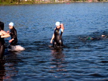 Comments: Had difficulty breathing because of the cold water. Did most of the swim with side stroke or sculling on my back. What would you do differently?: Get wet in the suit before the start. ![]() Transition 1