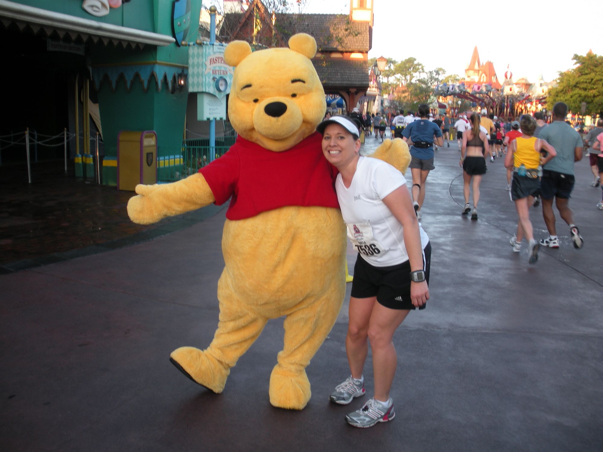 I made a huge mistake in assuming that there would be food available at the staging area. I had to be on the monorail no later than 4AM, which made for a very early wake-up (got up at 2AM, which is actually midnight in Phoenix!). I made it on time, but only to discover that water was the only thing available. Food was available, but only if I paid for it. Since I was staying at a Disney resort within monorail distance, I didn't bring any cash. D'oh! I had to run the race on an empty belly.
