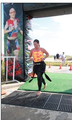 Comments: Just like Crystal Lake last weekend, I got off course, going too far left? This has never been an issue for me, but now this was back to back weekends? My goggles were pretty fogged up too, so that might have something to do with it?? And also, I mentioned above how I had the booties on, since I am a gynormous wuss when it comes to cold water, ya, well, being that I have size 7 petite baby feet, these booties felt like they were slipping off, so I ended up ripping them off and letting them go in the middle of the swim...I'm sure that cost me a couple seconds and it also meant I was out $31 but I didn't care... As soon as you rounded the yellow buoy, you were able to stand, so I stood, up as I tried to swim, but my God is it shallow. So, I ripped off the top 1/2 of the wetsuit, and goggles, and swim caps, and did the moving of my ponytail for the helmet, and I was off to sprint up the beach to the transition area. TIME OFF FROM LAST YEAR: 2:10 What would you do differently?: Not get off course! Continue swimming freestyle, and not resort to breast stroke when I get "anxious." Just rellllllaaaaaxxxx! ![]() Transition 1