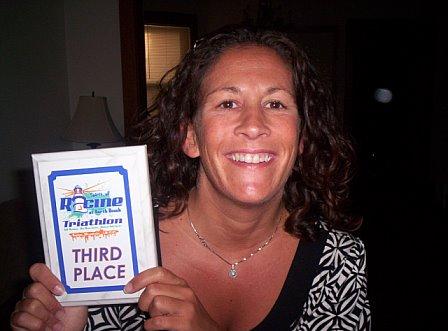 Warm down: Hung out with all the fellow BT'ers...PJ Grande, DJ Davey, Raytown Pete, Clint's Dad, DJ Davey's friend....I know I'm forgetting someone??? Didn't eat much, think I had 2 oranges and 1/2 of DJ Davey's PB&J sandwich...that's about all I could stomach... What limited your ability to perform faster: Tummy distress. Event comments: Total time off from Last Year: 3:50 LOVE coming up to Racine to spend time with the BT'ers...you guys are GREAT!!! (I'm saying that in my Tony the Tiger voice). Turned out to be a very nice day...and I took some time off...just missed getting a plaque, but hey, that's ok...tried my best, and to me, that's my plaque. ***UPDATE*** It pays to be nosey....I decided to look up the pictures of the girls who finished ahead of me, and I discovered the "person" who finished 3rd, was a MAN BABY!!! So, that means, I actually was third place, just like I told PJ I thought I was!! So, I have included the picture, of my plaque, which arrived on July 29th, MY BIRTHDAY!! Last updated: 2009-01-02 12:00 AM
