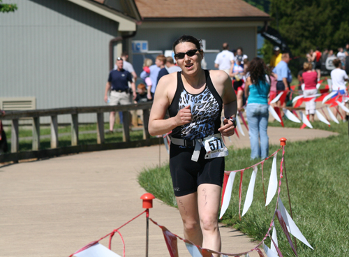 Comments: the first mile is basically up hill and hurts really bad on bike-tired legs; I knew if I just kept it moving that it would eventually get better, and it did. After the turn around I picked a pace bunny and worked at catching up to her and then hung off of her shoulder as we pushed each other; with about 300m to go she started to fade and I think she fell off to walk. My hammies were cramping up and my quads were screaming on the final downhill but I kept on pushing through it. In the final sprint I started to make a passing move but knew that it wasn't happening. I got in solidly under my 9.5min/mile target, about 2:30 faster than last year. Negative splits. My best ever tri run! What would you do differently?: smile more :) ![]() Post race