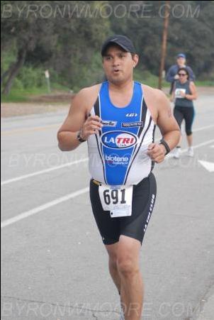 Night before packed my Tri bag and used my check list to make sure I didn't forget anything. Woke up on race day at 4:15am, ate a bowl of oatmeal and a banana, took two day quill, pumped my tires, went to bathroom, took a shower, put body glide on vital parts, dressed in uniform and sweats and left house at 5:30am. Got to Rose Bowl at 6:00am, found 35-39 section in transition area and started to prep. Realized I left electrolytes bottle in refrigerator and cadence computer in charger at home(DOH!!!). Drove back home and retrieved and got back to Rose Bowl by 7:15am. PHEW!