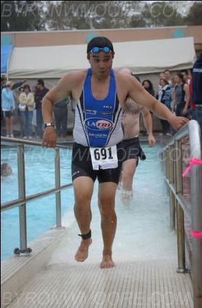 I would swim on the outside portion of the lanes. The inside portion of the lanes is crowded with people who are grabbing onto the lane line or cramping up. I would also make sure my racing chip is tighetened more securely on my ankle. Lastly, I will not make a funny face when I come out of the water because more times than not, the professional photographer will take a picture of you (which in this race he got me good).