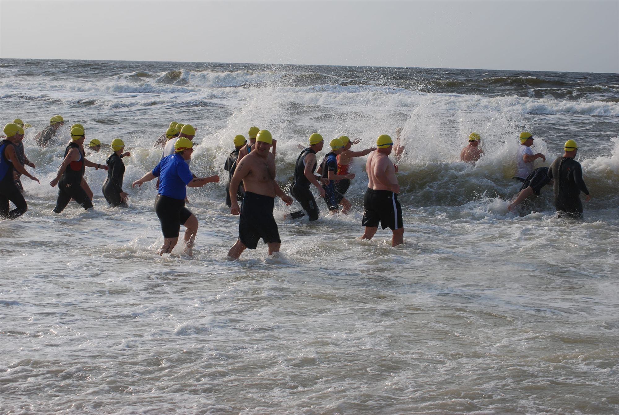 Comments: more aqua jog then swim. Heavy waves beat you up and threw you into others. It was kinda fun. Came out of the water way past the exit. Made for a long run up the beach. I think I was out of the water in 5:30 but took over 2 minutes to get to the timing mat. ![]() Transition 1