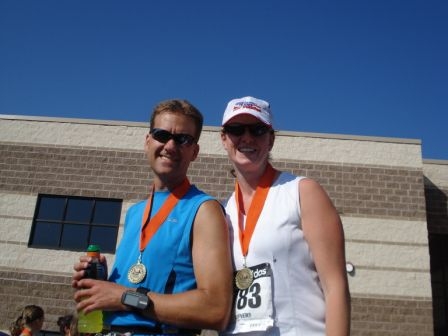 Speaking of my wife, I can do a little bragging that she placed 3rd in the Athena division and got her PR by about a minute finishing in 1:59:00. Way to go Jenny!!