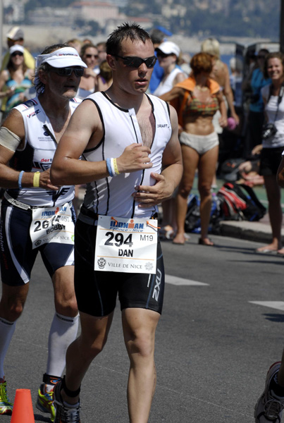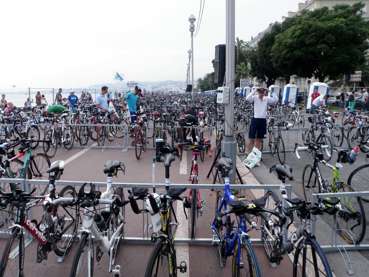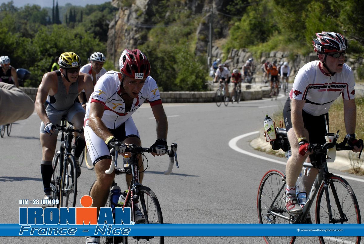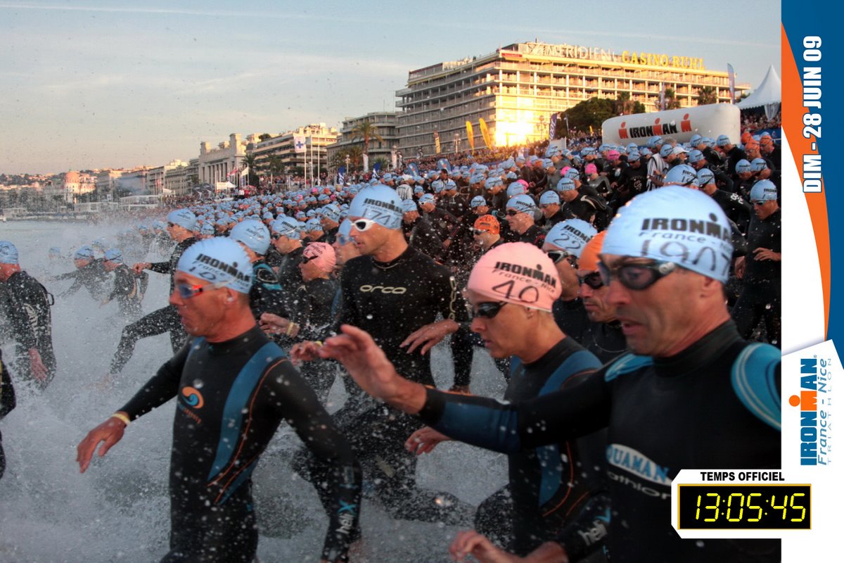 - Description: Athletes will begin with a beach start and embark on a two-loop, 2.4-mile swim in the pristine waters of the Mediterranean Sea. The 112-mile bike course is the jewel of IRONMAN France as it follows much of the original Nice Triathlon route and passes through villages and mountains. There are 5,000 feet of challenging climbs, but athletes will enjoy beautiful panoramic views. The 26.2-mile run will include a flat and fast four-loop course along the Promenade des Anglais. Athletes can expect impressive spectator support along the route.