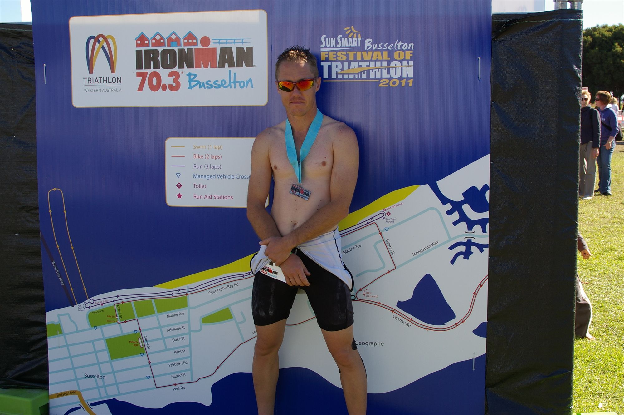 - Description: SunSmart IRONMAN 70.3 Busselton is one of the largest events of its type in Australia and the Asia Pacific region. Many spectators line the foreshore of Busselton to cheer on the athletes over the 1.9km swim in the pristine waters of Geographe Bay, 90.1km flat and fast bike leg thru the Tuart Forest and a 21.1km run along the foreshore of Busselton.