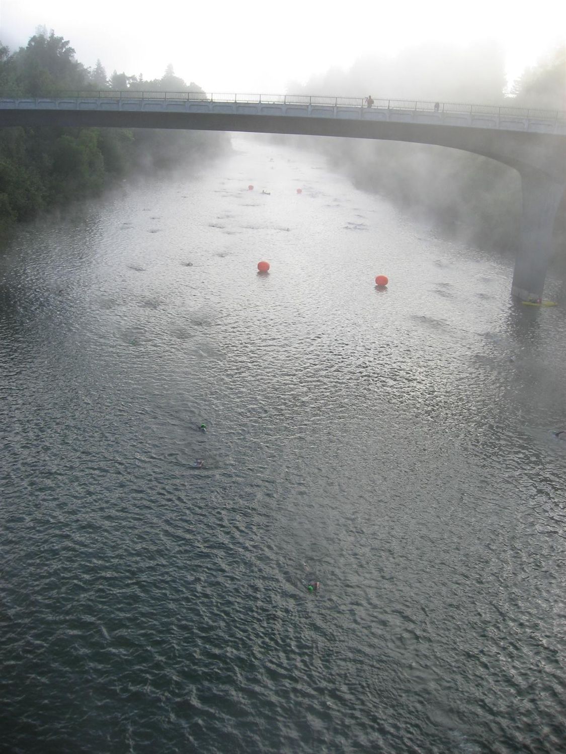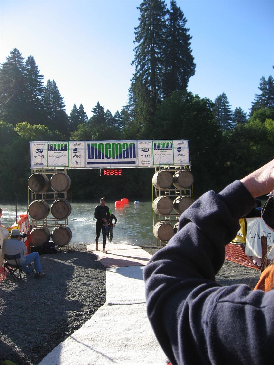 - Description: The Vineman AquaBike swim is staged at Johnson’s Beach in Guerneville, California. The swim takes place in the Russian River. Water temperatures are typically between 72 and 76 degrees. If this is the case on race morning wetsuits will be allowed as this falls within USA Triathlon guidelines.