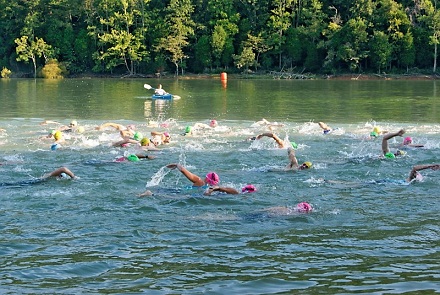 The course is challenging enough for a seasoned athlete yet gentle enough for the beginner as it winds it’s way around one of the most beautiful state parks. A two lap swim and bike ride make this a very spectator friendly race.