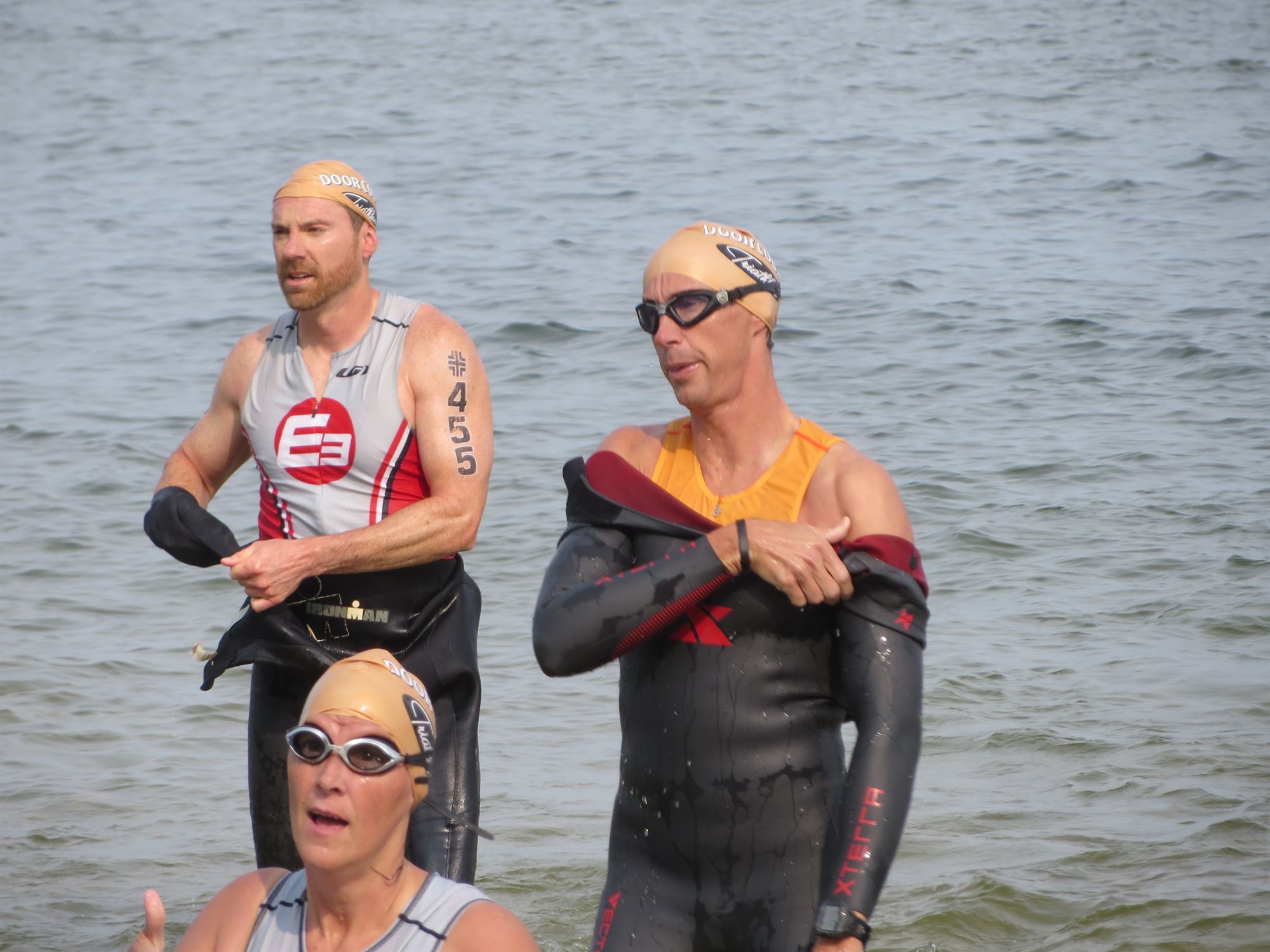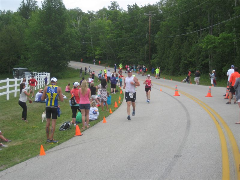 - Description: This challenging Half Iron course begins with a 1.2 mile swim in the clear waters of Horseshoe Bay. The 56 mile bike route travels along Door County’s scenic backroads, through the main retail district in Sturgeon Bay, along the shipping channel, out and back on a wooded back road and gradually ascends 200 feet up the famed Door County Bluff before returning to Murphy Park. The 13.1 mile run course takes participants north to the Egg Harbor Dock, up Harbor Heights Road, through the village of Egg Harbor, up the infamous Bluff Pass Road (200 foot climb in 1/2 mile), and through the stacked stone fences of Horseshoe Bay Golf Course before a downhill descent to the finish line.