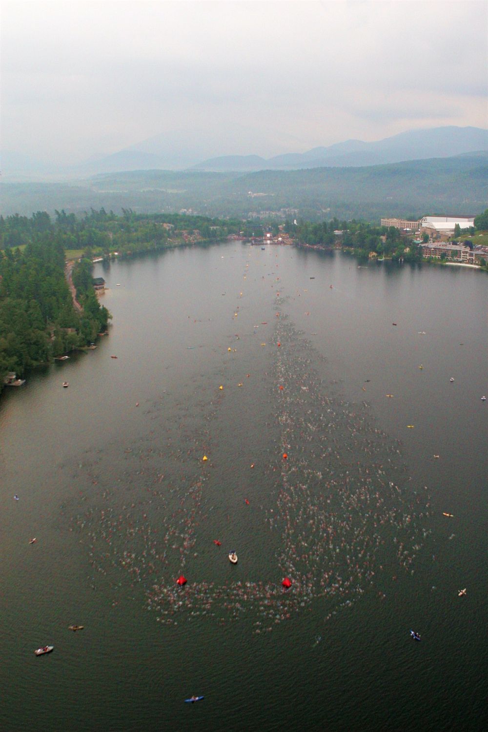 Athletes begin with a two-loop swim in clear Mirror Lake, with the famous sight line lining the bottom of the lake. Transitioning in the Olympic Speed Skating Oval to the bike, the rolling mountain views provide a scenic backdrop. Two loops of 56 miles bring competitors back to the Oval once again, where they begin their 26.2-mile run through the town and around the lake.