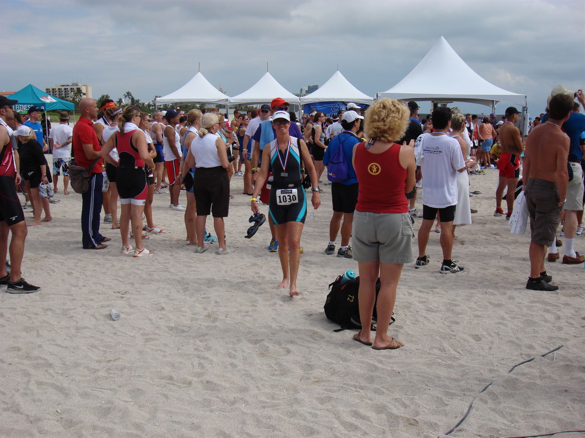 - Description: The Life Time Tri South Beach begins with an ocean swim in the beautiful, warm water (expected water temperature is 78 degrees) that runs parallel to world-famous South Beach. The bike course will be relatively flat, crossing over Miami Beach's famous Causeways with scenic views of the Intracoastal Waterway, downtown Miami and Miami Beach. The run course will be a fast out and back alongside Miami Beach's Art Deco District, finishing on the white sands of South Beach.