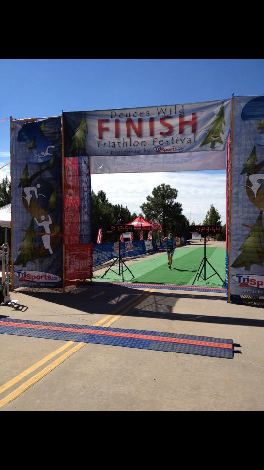- Description: The water temp will be between 58-65 degrees so you should really consider wearing a wetsuit. You'll swim on a triangular course going in a counter clockwise direction with the buoys on your left. Most of the first half of the bike course consists of one big climb that gets you up to 6900 feet before descending back down over the next 8 miles to T2. The run starts off with a descent but soon turns into a crazy climb at mile 1. After that the course remains fairly flat, with a few slight rollers in the last 2 miles.