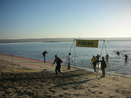 - Description: The Mission Bay Triathlon celebrates the first triathlon in history, the Mission Bay Triathlon, was held in 1974 as a run-bike-swim-run event on Fiesta Island by the San Diego Track Club. This year, 1600 competitors from around the country will return to Mission Bay to celebrate the triathlon.