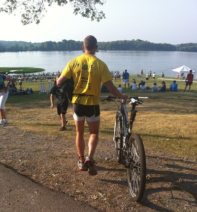 The run course will be 2 laps out and back around the peninsula. Each lap will be 2.1 miles. The course is 60% single track and 40% grass and asphalt.