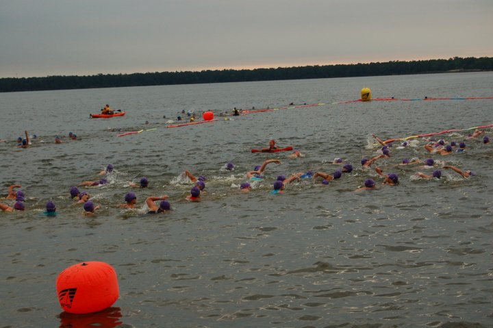 - Description: Swim: The swim takes place in Lake Houston and will be triangular with buoys and a swim noodle line following the course for safety and to distinctly mark the course.