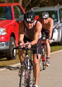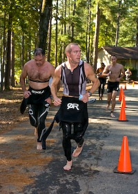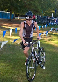 The bike is long and tough, as the event returns to the original 28 mile, one loop course. With the steepest grades being found in the first 3 miles the course flattens out to rolling hills throughout the rest of the bike. A water bottle handoff can be found at mile 16. Turns are marked with pavement arrows and directional signs. Police and volunteers man all intersections.