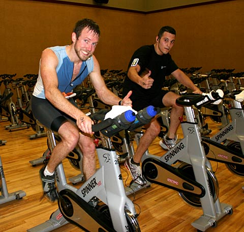 10 Minute Swim in Lap Pool 10 Minute Transition (Swim to Bike) 30 Minute Bike in Cycle Fitness Studio 5 Minute Transition (Bike to Run) 20 Minute Treadmill Run