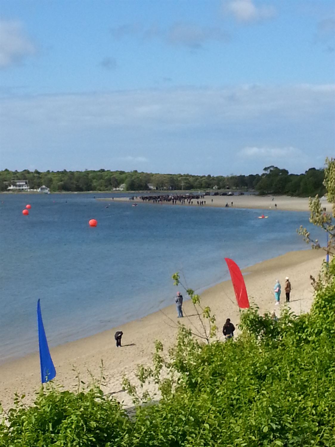 - Description: This 1/3 Mile bay swim is protected deep in Onset Bay, so on the windiest days, it's calm in Onset. The swim course is a point-to-point style, set in shallow waters along the coast. We?ll walk together from the transition area to the swim start at Shell Point. From there, it?s a straight shot back to Onset Pier and under Max?s huge finish arch! Plenty of buoys and boat support will help guide you along the way.