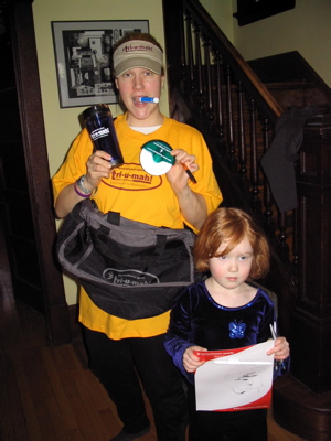 Since the amount of time spent on each section is identical for each participant (30 minutes per section), champions are determined by total distance traveled. Volunteers will record the total laps (swimming) and miles (biking and running) completed during the event. The total distance traveled will determine the champions for each age group. In addition to individual age group champions, there will be an overall male and female Tri-U-Mah! champion.