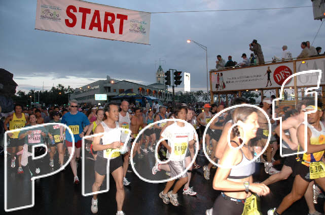 - Description: The 8.15-mile relatively flat course starts at Aloha Tower in Downtown Honolulu, winds its way along the historic Honolulu Harbor, down Nimitz Highway, Kamehameha Highway and into the Aloha Stadium. The finish line is the back goal line of the north end zone on the stadium floor. Aid Stations are at approximately miles 3, 5 and 7 as well as the end of the course.