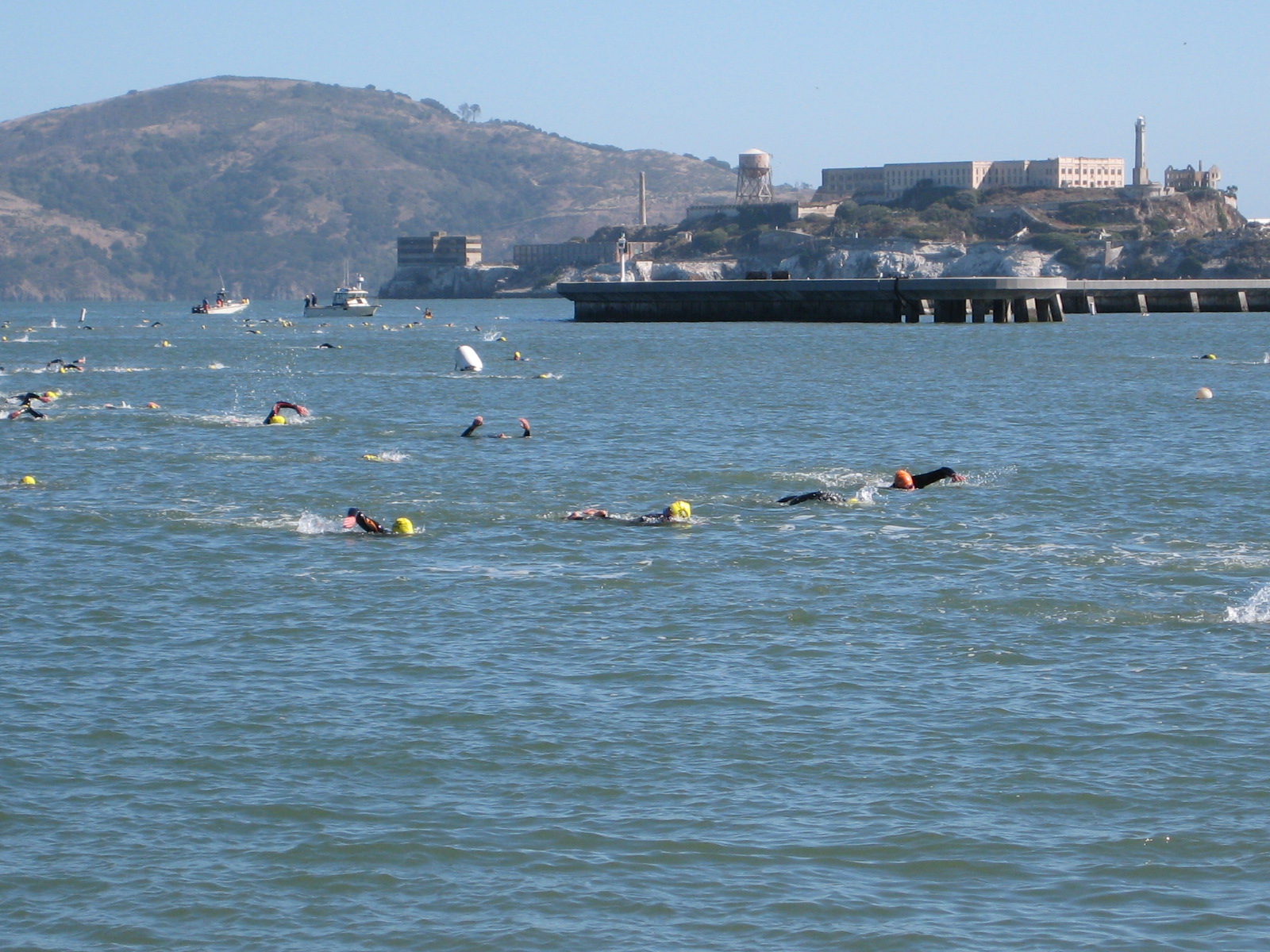 - Description: The course combines the original swim from Alcatraz with an 7 mile run to Fort Point and back to Aquatic Park. You have heard the stories, you’ve seen the movies, you know the infamous inmates, but NOW it’s your turn to make history on the ESCAPE course! As the tourists ferry to the island, you’ll be swimming away as you make the ULTIMATE ESCAPE! The event is limited to 500 participants, so don’t wait to register!