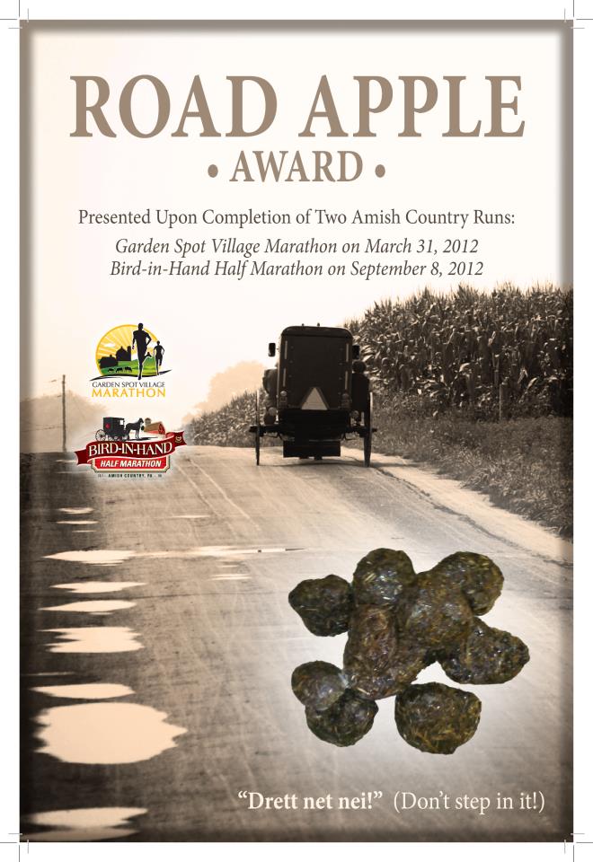 - Description: 1/2 marathon through the "valley of no wires" in Amish country.