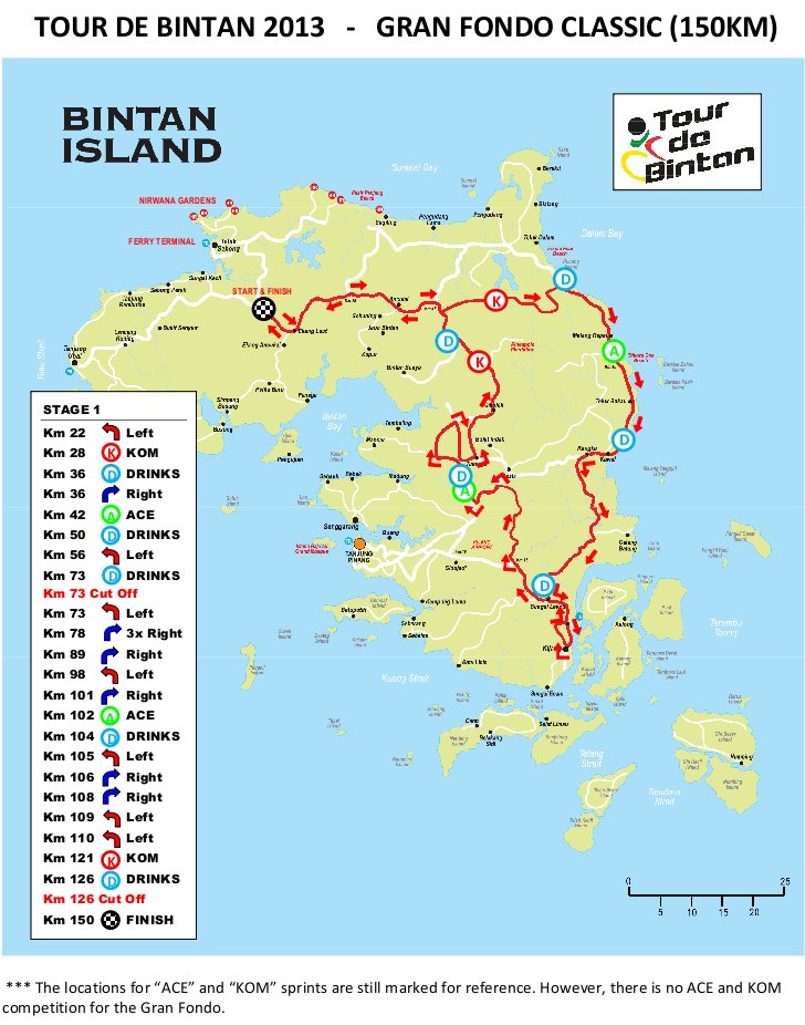 - Description: Asia’s epic cycling challenge in beautiful Bintan. Tour de Bintan is open to cyclists of all levels. New this year, Tour de Bintan is now part of the UCI Gran Fondo World Series and is now the only qualifier race in Southeast Asia for the World Championships. Discover a great cycling environment only a short ferry ride from Singapore.