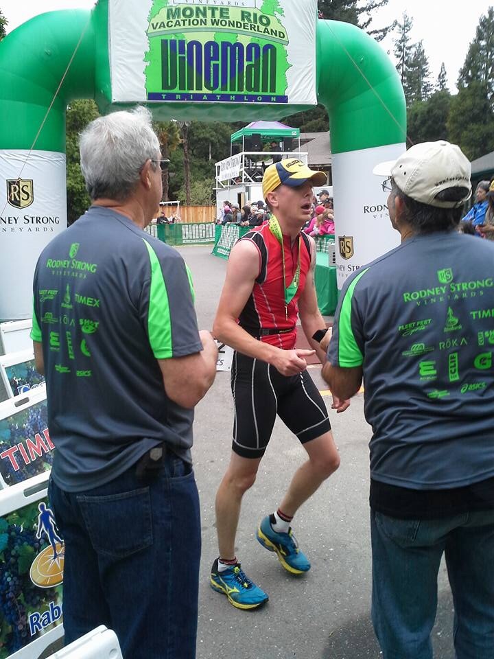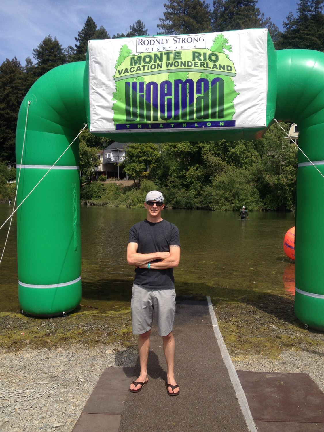 - Description: The 1.5K Swim will be staged in the Russian River, just four miles downstream from Johnson's Beach, the venue where the other Vineman Triathlon events have been held for more than two decades. The 40K Bike course follows the Russian River to the picturesque coastal town of Jenner and back. The 10K Run is held on the course that once was the home of the Moscow Road Race, a popular run from the running boom days of the 1970's. The run course is flat, fast, and shaded almost the entire way.