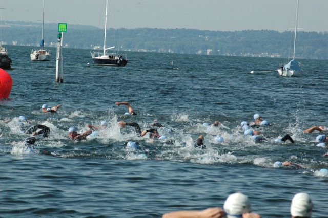 - Description: The deep-water swim course takes place in a canal connecting Seneca Lake to the Seneca River, with an in-the-water start and excellent spectator viewing for the entirety. Water temperature is typically in the mid-70's, so expect wetsuits to be allowed.