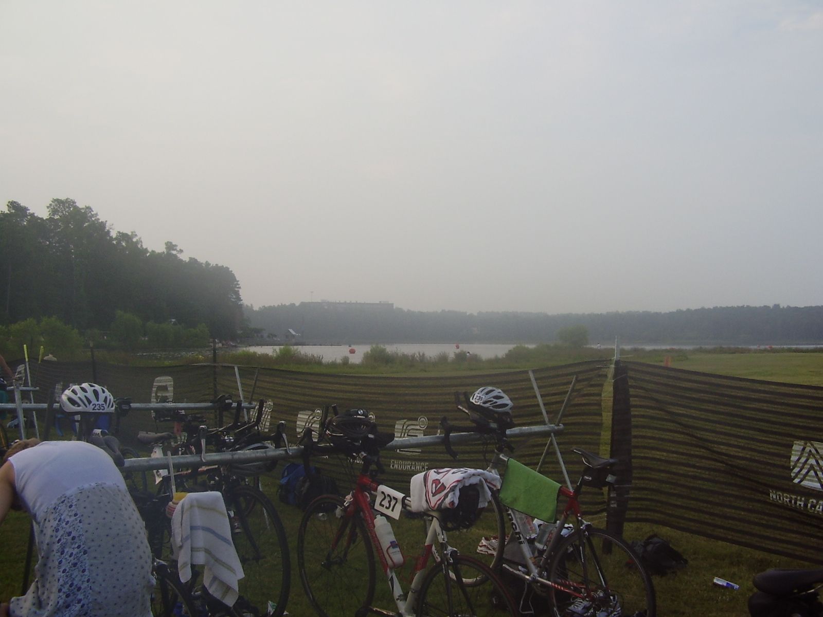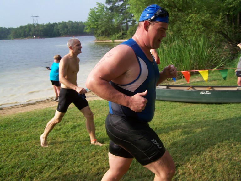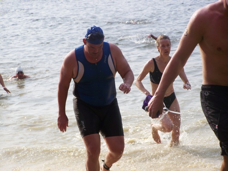 - Description: Swim: The swim is a 750 meters in the Lake Harris. It will be a point to point swim. The start and finish of the swim are about 400 yards apart.