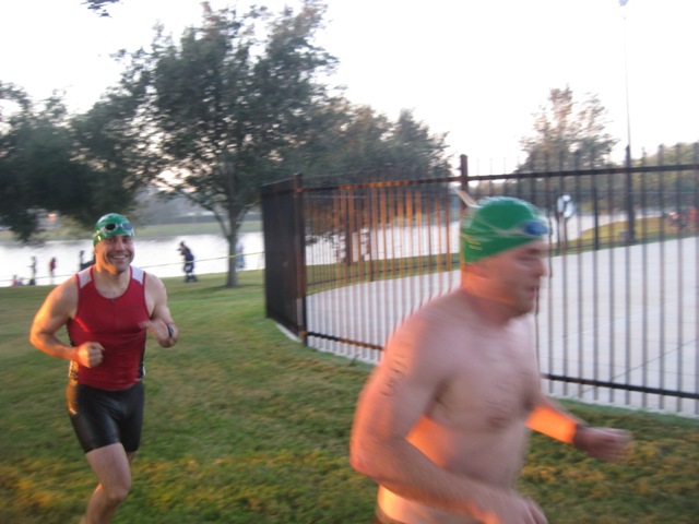 - Description: This is a GREAT TRI for experienced triathletes, as well as well-prepared first-timers who can swim open water. (Newbies must be COMPETENT swimmers in open water, especially kids. Must swim 10:00 or better for 300 meters in open water to participate.) Our 21st ANNUAL and popular! A 300-meter straight-shot, wide, point-to-point lake swim in First Colony next to the transition area/ 10-mile bike on a safe, divided four-lane boulevard with plenty of SLPD protection/ 3-mile double-loop shaded neighborhood run with four water stations. Late October weather is normally pleasantly cool, but not extremely cold. In 2012, air temp was 72 degrees and water temp was 80 degrees. Many in the field are first-timers, who will receive first-timer medals at Memorial Hermann tent, as well as hundreds of multi-year returnees. All ages 10-80 are welcome.