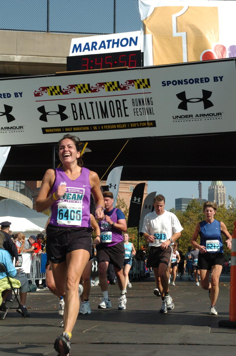 - Description: The half-marathon start line is a party on the shores of Baltimore’s famed Inner Harbor, the 13-mile mark of the marathon. Complete with a live band and 11, 000 of your new best friends, this unique set up allows for the fastest marathoners and those attempting to qualify for Boston to pass and assures that the marathon champion will be the first to cross the finish line for the LIVE television coverage on WBAL-TV. The half-marathon will split from the marathon at Pratt Street and merge later in the race with marathon. From that point, marathoners and half-marathon participants will run the same course to the finish line.