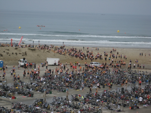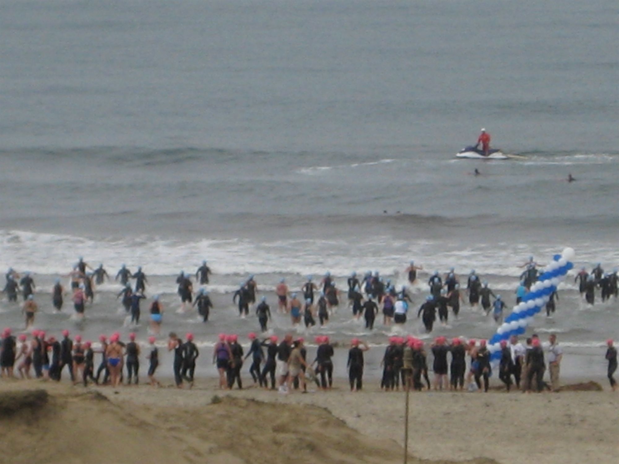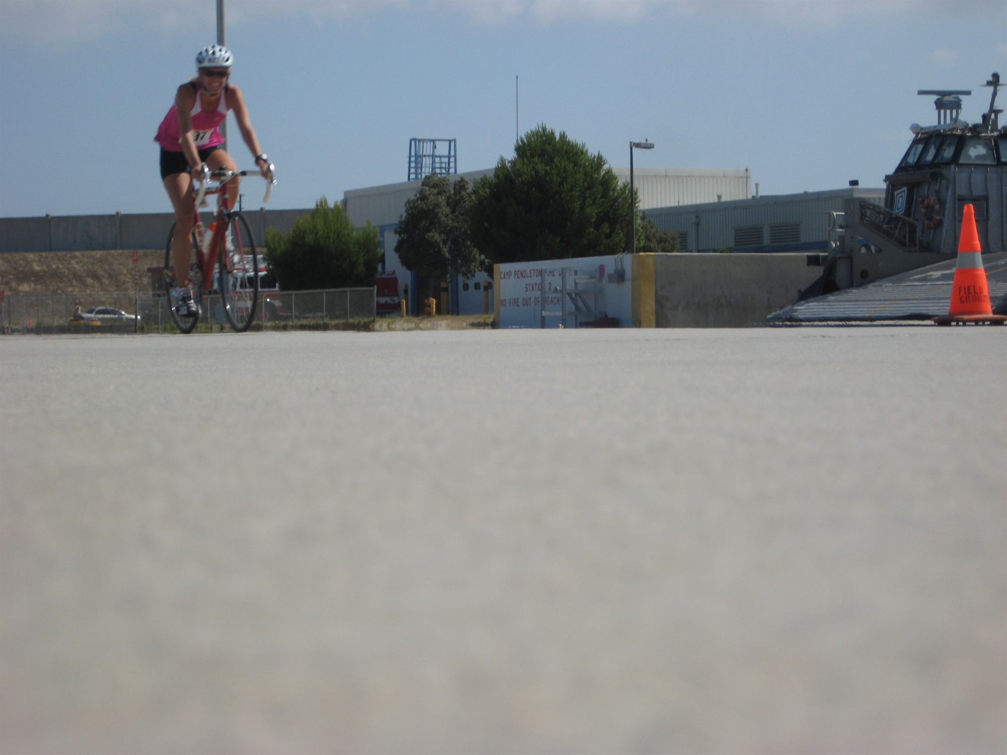 - Description: 500 meter swim off of ACU-5 Camp Pendleton. The average water temperature for this event is 68 degrees, we advise wearing wet suits. The out and back 30K bike ride leaves ACU-5, follows Stuart Mesa Road North, and continues east to a turnaround point on Las Pulgas Road-moderate hills throughout. THE BIKE PORTION IS NOT A CLOSED COURSE. YOU WILL BE SHARING THE ROAD WITH CARS- PLEASE RIDE SAFELY. 5K run is a loop course through ACU-5. This run is flat and fast with a few easy inclines. Aid Stations will be located at the transition area, at the bike turnaround and every mile on the run course.