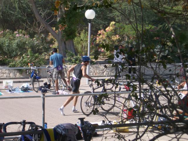 Comments: I swam the first 150 meters in freestyle, so I did not do too bad, and was in the middle of the crowd. Then I decided to drop back and change to breast stroke because I was affraid not to be able to sustain freestyle, exaust myself and not make the cut-off. I was also discouraged by the early abandon of one of the pro's at the race. What would you do differently?: I did not dispute the swim because I cconsider myself a bad swimmer. According to friends watching the race I passed plenty of other swimmers on the second loop and there were over 30 behind me (the field was around 150 swimmers). I will go freestyle next time, and I will dispute the race rather than just let anyone who was close to me go by unchallenged. ![]() Transition 1