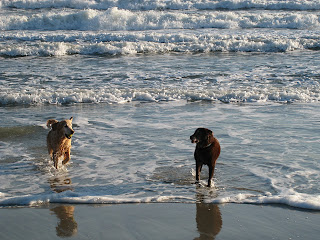 DH and I each took a half day of vacation and on Friday afternoon we loaded up the Fit and headed to Morehead City with the Girls. After we checked into the hotel, we went to Atlantic Beach and let the Girls run on the beach and then picked up my race packet.