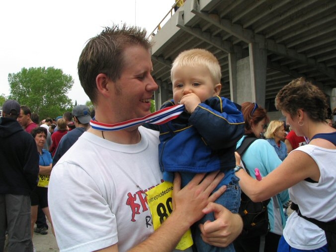Comments: Disapointed that I didn't break 2h, but pretty pleased regardless with my first 1/2 time. Legs felt great until mile 10 or so. Spent the first 10 chatting with lots of people that I knew from high school, university, and work. I actually knew quite a few people out there. The beer at mile 7 was about the best I've ever had in my life. By 12 my legs were garbage. I couldn't sprint out the last mile without falling on my arse. At least I was able to run it in all the way. What would you do differently?: Find a better pace bunny, or just count on my own watch for timing. Really upset she didn't let us know waaay beforehand that she had fallen behind. ![]() Post race
