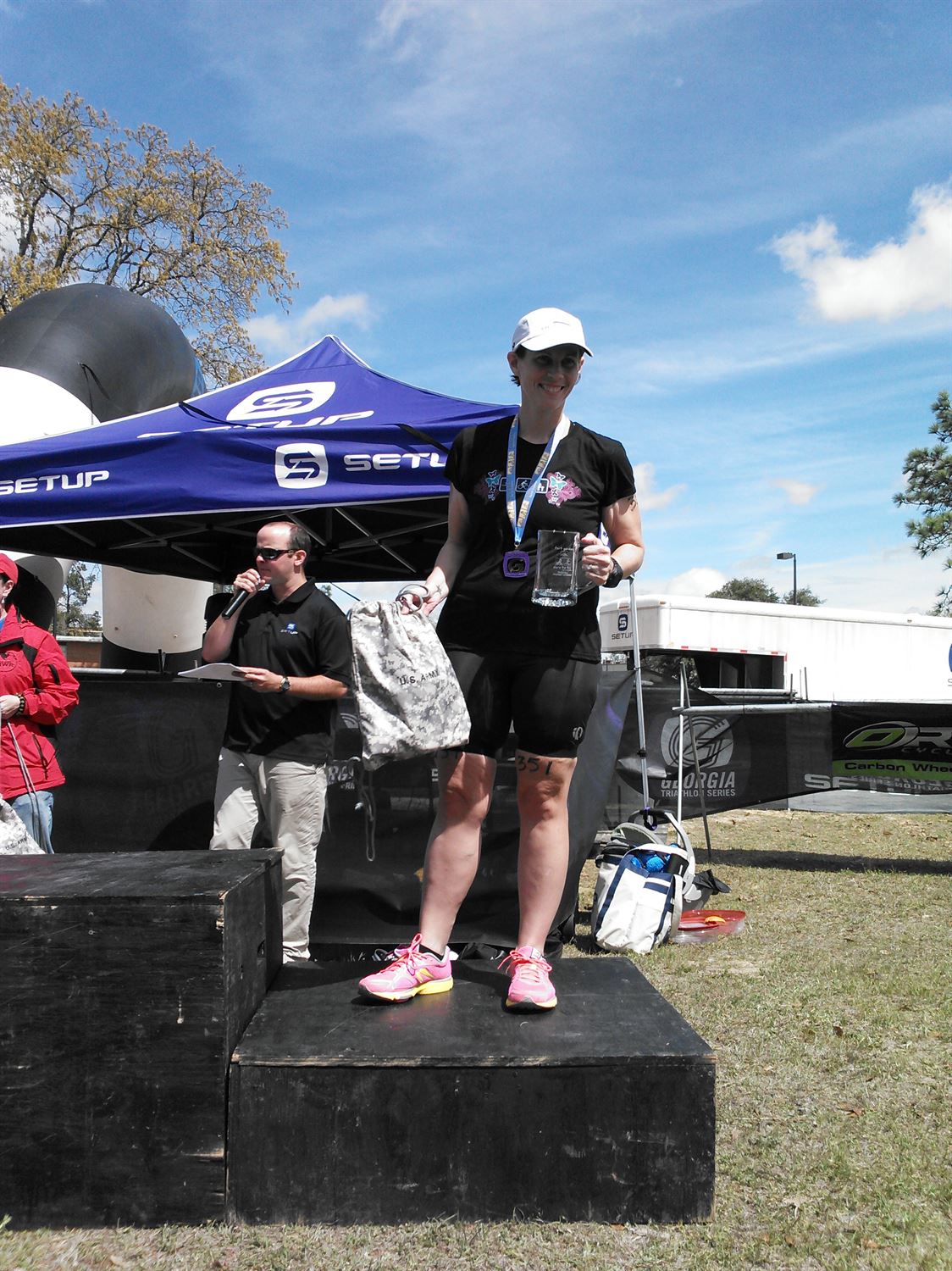 Warm down: Big hugs and kisses from hubby, it was such a wonderful moment to share with him. Drank a protein shake and ate some pizza. Found some friends and chatted until the awards ceremony. Found out I placed 3rd female overall. Received a large custom etched beer mug for a award along with a goody bag that included gourmet chocolate. What limited your ability to perform faster: Obviously having surgery 10 weeks ago as well as having an endoscopy 48 hours prior Event comments: Setup's Georgia Triathlon Series has come a long way, this event was top notch, I had a wonderful time Last updated: 2014-03-02 12:00 AM