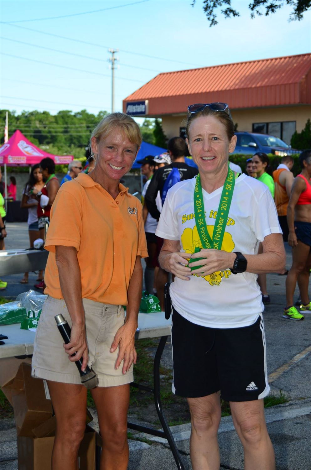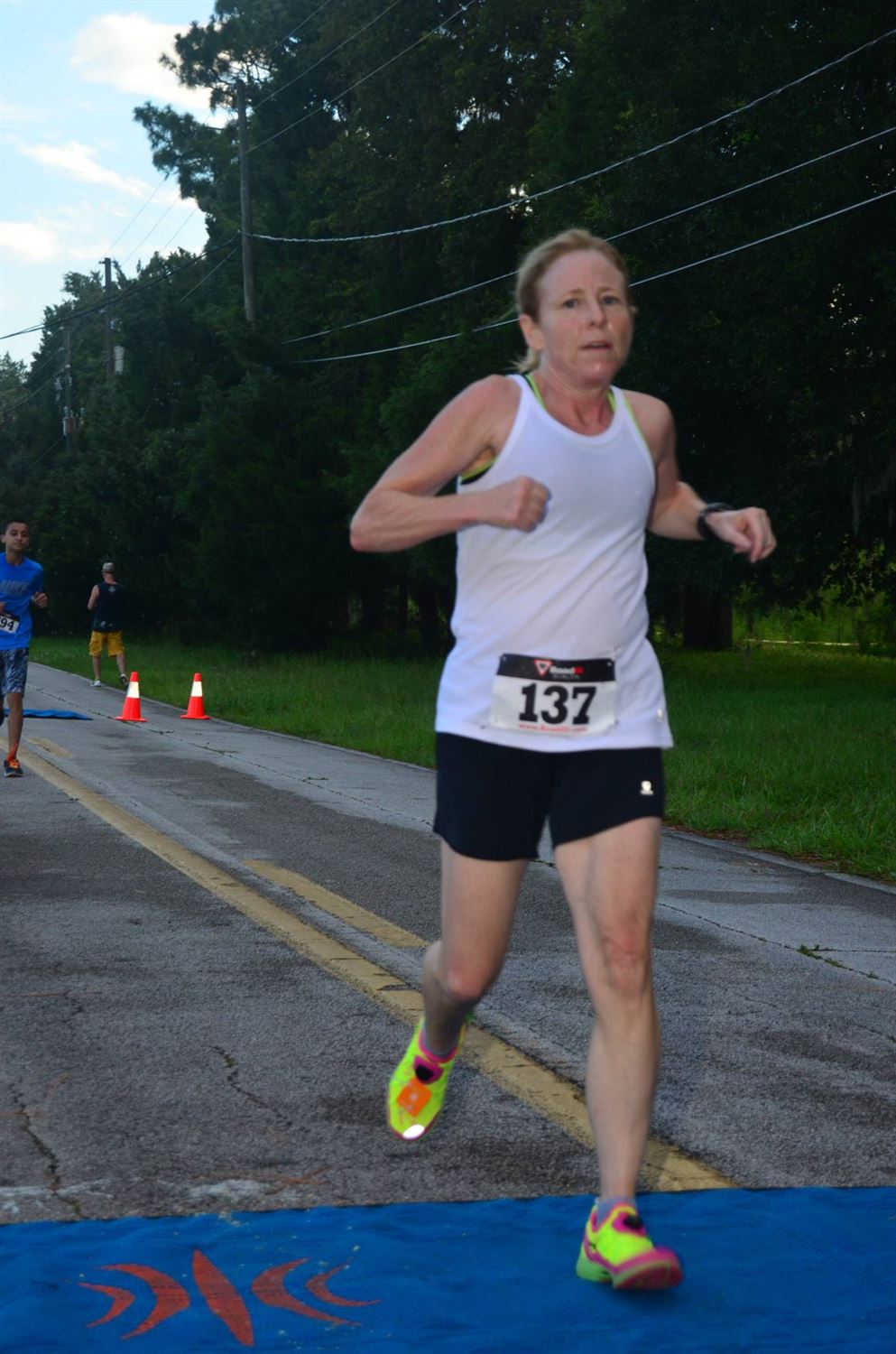 Comments: I knew going into this that I was not going to have a fast time. Last weekend I pulled an interesting muscle while doing the "frog" pose in yoga. It is rather hurty and I can't run like I would like. So, the plan was just to go out and see how the leg felt and not do any more harm to it. The first mile was suckage because I was not warmed up and I had discomfort in the leg with every footfall. Surprisingly, going up the "hills" felt much better than going down. During the first mile, on the downhills I really felt like I had to be careful my leg would not give out on me. So, I couldn't open it up as I would normally. Once I was warmed up this feeling went away and I was able to run the downs a bit better. While I felt better miles 2 and 3, my pace was pretty consistent throughout. Unfortunately, it was slower than my HM pace! I noticed as I went along that I passed a lot of people, but that only a couple of guys passed me. I couldn't see too many women in front of me, but figured that there were many well ahead of me. I was wrong. At about 200 m out I could see the finish line and hear the announcer. Too my surprise I heard him announce that the first woman was just about to finish. What?! I could see that there were 2 or 3 woman ahead of me and one of them was the overall woman. So, that meant i was the 3d or 4th woman (I was 4th)!! Ha, ha, you have to love small races :) What would you do differently?: Not do the frog pose! I am a bit disappointed that I was injured for this race as I would have liked to see where I would place if I was running like a normal 5k pace. Still, this was fun. ![]() Post race