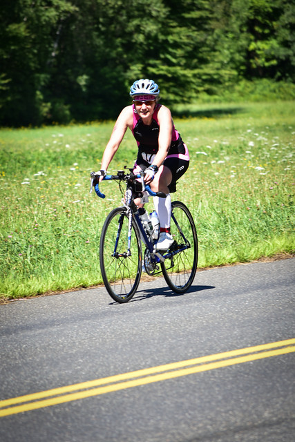 Comments: - Short run (~0.05 mi) from river bank to transition. - Pretty efficient top wetsuit removal while exiting the water, jogging up to transition. - Felt a little disoriented/dizzy while stripping off the rest of the suit in transition. I completed my transition deliberately, aka slowly. Placed my wetsuit in the trash bag, wiped my feet a couple of times, made sure my gloves were on. Impacted T1 time. What would you do differently?: Don't worry about wetsuit. Consider not using bike gloves. ![]() Bike