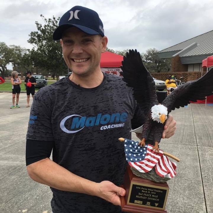 Warm down: Immediately crossed the finish line and laid there until my HR returned to normal. Grabbed a monster rehab and a couple cookies. Cheered for my wife and 2 friends and was very social with everyone. Packed up transition and hung around for awards. Ended up finishing 2nd in military division and got a huge eagle trophy. What limited your ability to perform faster: limited pool time, travel the day before, and lack of sleep. Course record for me at Parris Island by 16 seconds! Event comments: Great race but bring the bug spray, the gnats were out in force biting hard. It was awesome Malone coaching and the US Navy. I took 2nd military division but also would have taken 2nd in 35-39 year old age group; that was special to me because our age group has a special friendly rivalry. Again I started the season off by beating my favorite competitorStephen Shenal, so it really made the training feel worth it. USAT scored the race as 85.135 for me, new record high! Last updated: 2016-03-20 12:00 AM