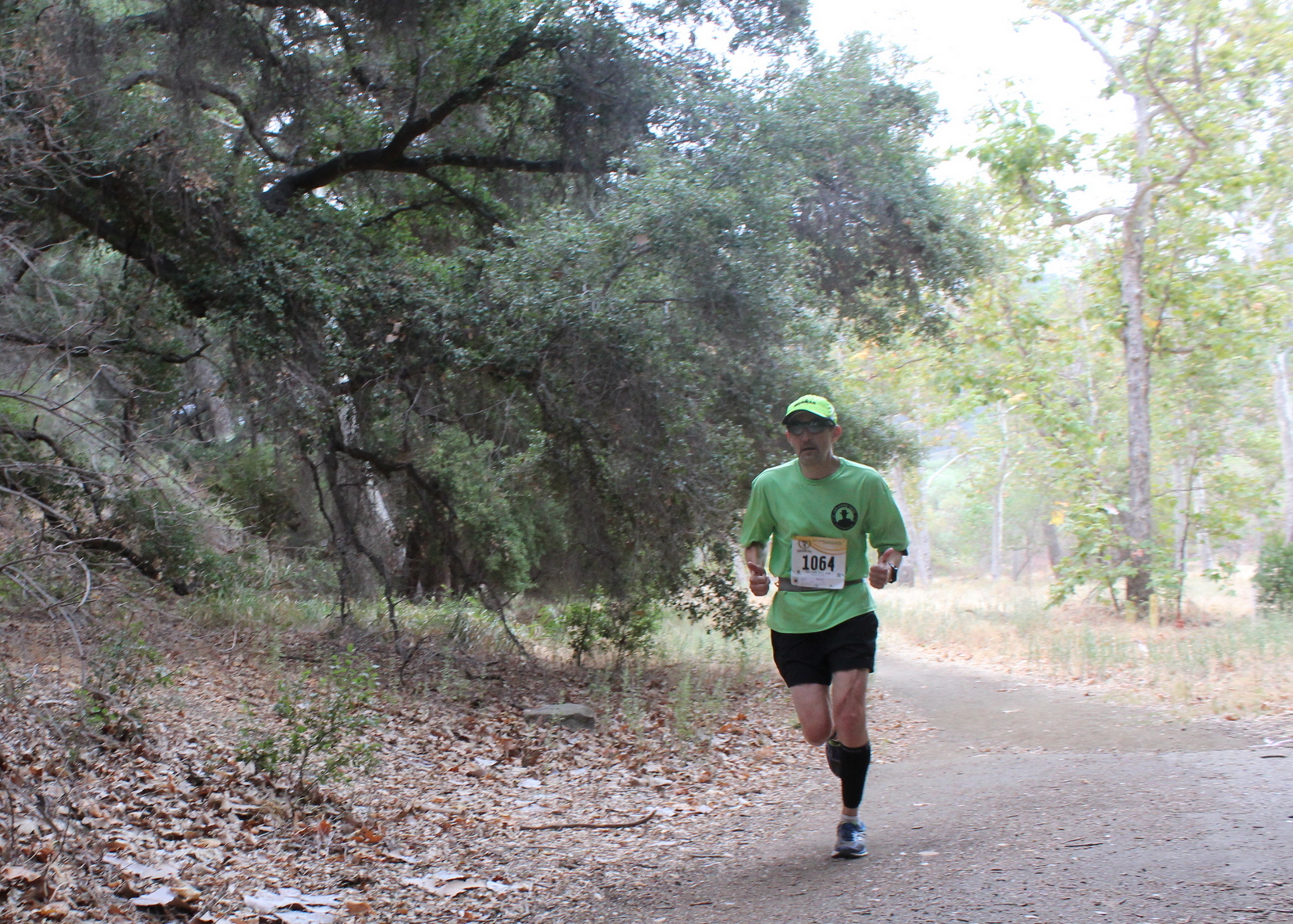Recovering from probable broken little toe on left foot 3 weeks before the race (didn't waste the time and money going to the doctor for x-ray, but it appeared to be broken). Did what I could (stationary bike, then elliptical and swim) to maintain fitness until I could get back into a running shoe and run. Targeted a 1 hour run with my club two days before the race as the yes/no decision point on doing the race. That run went well, so I showed up at Malibu Creek S.P. for this venerable trail race with about 3000' of climbing in 15 miles.