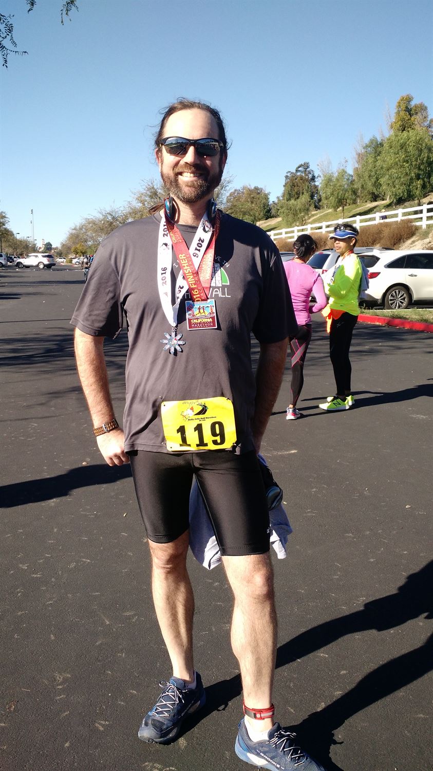Drove down to Camarillo the day before the race and picked up the race packet. My hotel was near a large retail outlet shopping center so we went there to pick up some gifts for family. Not knowing just how big the shopping center was, we parked at one end and figured we could walk to the store we wanted to shop at. Turns out the center spanned 3 parking lots and the store we wanted was on the exact opposite side so we got a quite a good walk in (about 2 miles round trip) and called it excercise for the day.