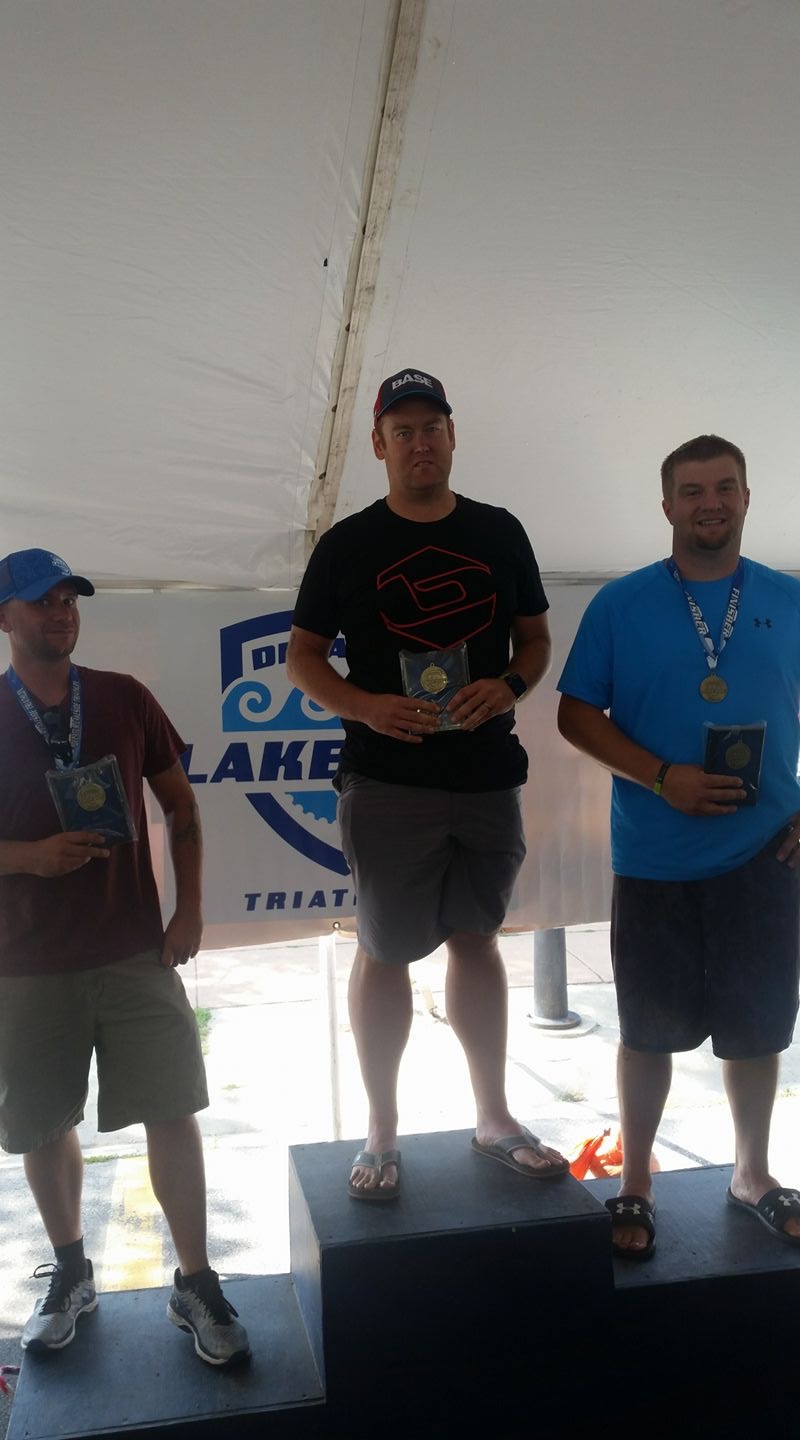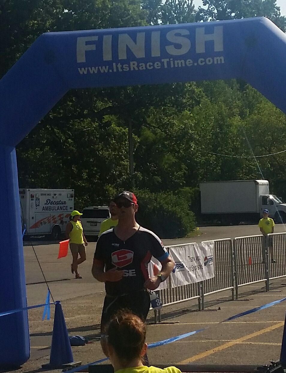 Comments: Tried to maintain pace evenly through all 3 miles. First mile was 9:36 and miles 2 and 3 were both 10:17. I slowed up a little after 1.25 miles when I was running past transition and saw the only other person in my AG I knew just coming in off of the bike (he beat me by a few minutes last year). Overall I had a good run and it was nice to be able to cruise the last 1.75 miles knowing I had a big lead (ended up winning AG by nearly 15 minutes). ![]() Post race