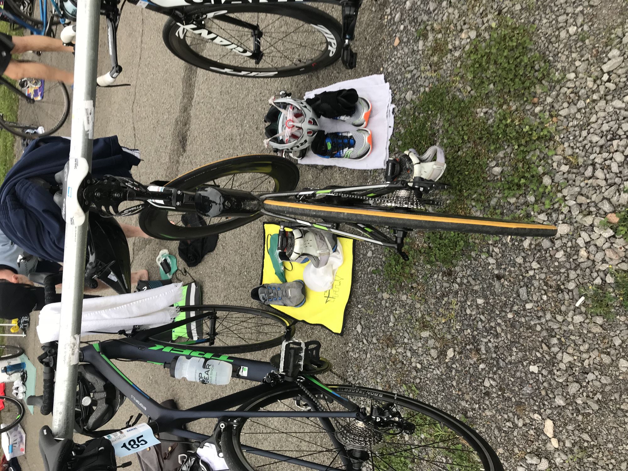 Woke up at 5:00. Ate overnight oats with banana and peanut butter. Gathered remaining things and drove up to Moraine. A little trouble with the GPS which kept trying to take me to the South Shore rather than the North. Arrived in plenty of time to park, put my bike and bag in transition, stand in line for race packet, and get body marked.