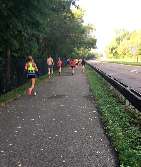 3:31.20, 3:17.25, 3:25.97, 3:55.62, 3:38.83, 3:19.80, 3:25.60, 3:36.12, 3:24.29, 3:29.61, 3:24.16, 3:21.71, 3:19.61, 3:19.08, 3:27.85, 3:18.22, 3:30.76, 3:21.14, 2:06.32 (6:17 pace, 0.33 miles) = 9.33 miles at 6:52 pace.