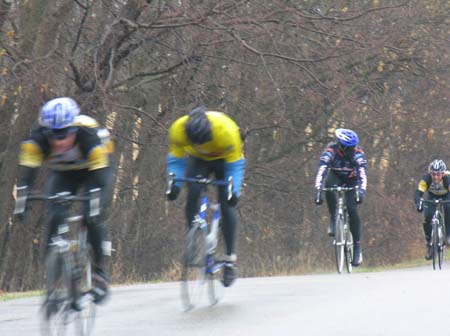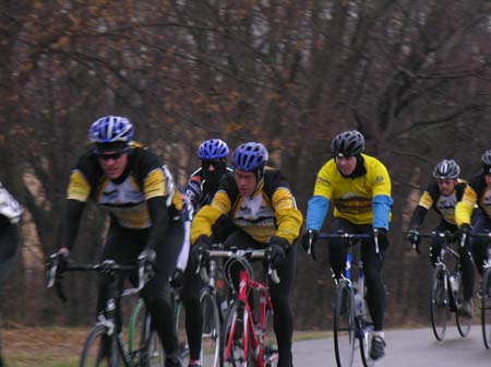 Comments: We as a team tried to be much more tactical this time and it paid off. We got good positions on the start line and took control of the lead group right from the get go, first couple of corners were sporty with the rain in the pack but everyone settled down pretty quick. VeloTek was riding our wheel the entire time and would not come up so we pulled it back to around 17-18 mph, way way easy and they were happy to just stay there. BL - Total tactical race vs the hammer fest last time. Sprint lap I was in 6th when the bell went off, little farther back than I wanted to be but OK. Around turn 2 went to the front and sat in 3rd, turn 3 still 3rd around last turn Mark came flying out of know where and we were off...Brent and I took off and I stayed on his wheel for 2nd on the sprint (same team and he did the same for me last time). Right back to the easy cruise with the velo tek dudes not wanting to pull. Brent and I got our legs back way fast and we got the team back together and got the same game plan. Actually got the velo tek dudes out front with 4 laps to go. At 1.5 laps to go, looked over at Brent and said lets go, off we went to the inside before turn 3. Out of turn 4 was looking pretty good and Nukes (our team) comes to the inside out of no where and takes the lead to pull for Santa Fe!!! I hopped on his wheel until the 1st turn then he is spent but Jason comes along and pulls until turn 2 like a mad man, he totally dropped the hammer and pull me and Brent out of the pack. With a 1/2 lap to go I dropped the hammer and took off, Brent was late to go with me and I kept the lead from then on!! First win and it was an AWESOME team win for Santa Fe. What would you do differently?: Nothing, we executed a great tactical race, especially for a group of dudes who just raced for the 2nd time together!!! ![]() Post race