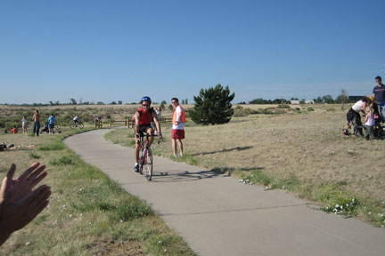 Comments: I was a little disoriented taking the chip off and handing it to Jay - but somehow got it done. Since there were no shoes to put on and no bike to run out with (since my leg was over) - I just cheered Jay out of the transition area and went to find a good place to keep an eye on the course so I could see him come in. Met Zev who was there to check things out! Nice to meet you Zev, and talked a little bit with Matt (blackbud) who was out there supporting Jen (numberswoman). What would you do differently?: Nothing - since this was just a relay. ![]() Bike